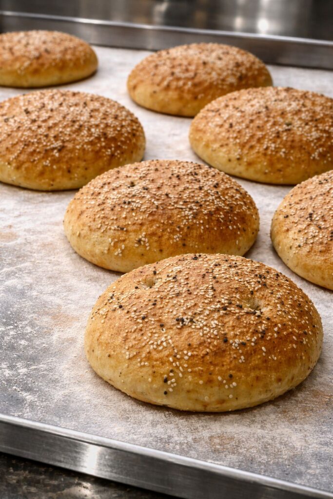 Runt Barbari-bröd toppat med sesam.